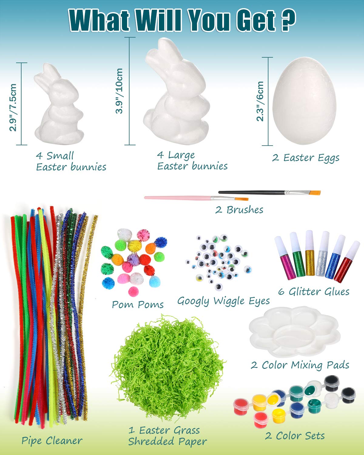 Csyidio 8 pezzi coniglio pasquale con 2 pezzi uova di Pasqua in schiuma kit per decorazioni pasquali fai da te creativo giocattoli pasquali per bambini artigianato e arti set regalo