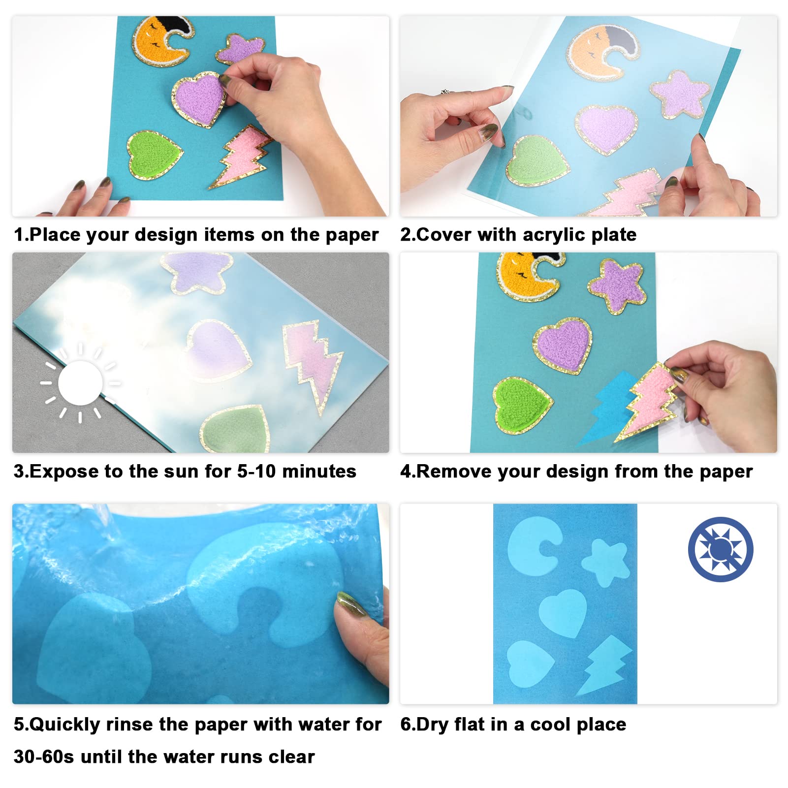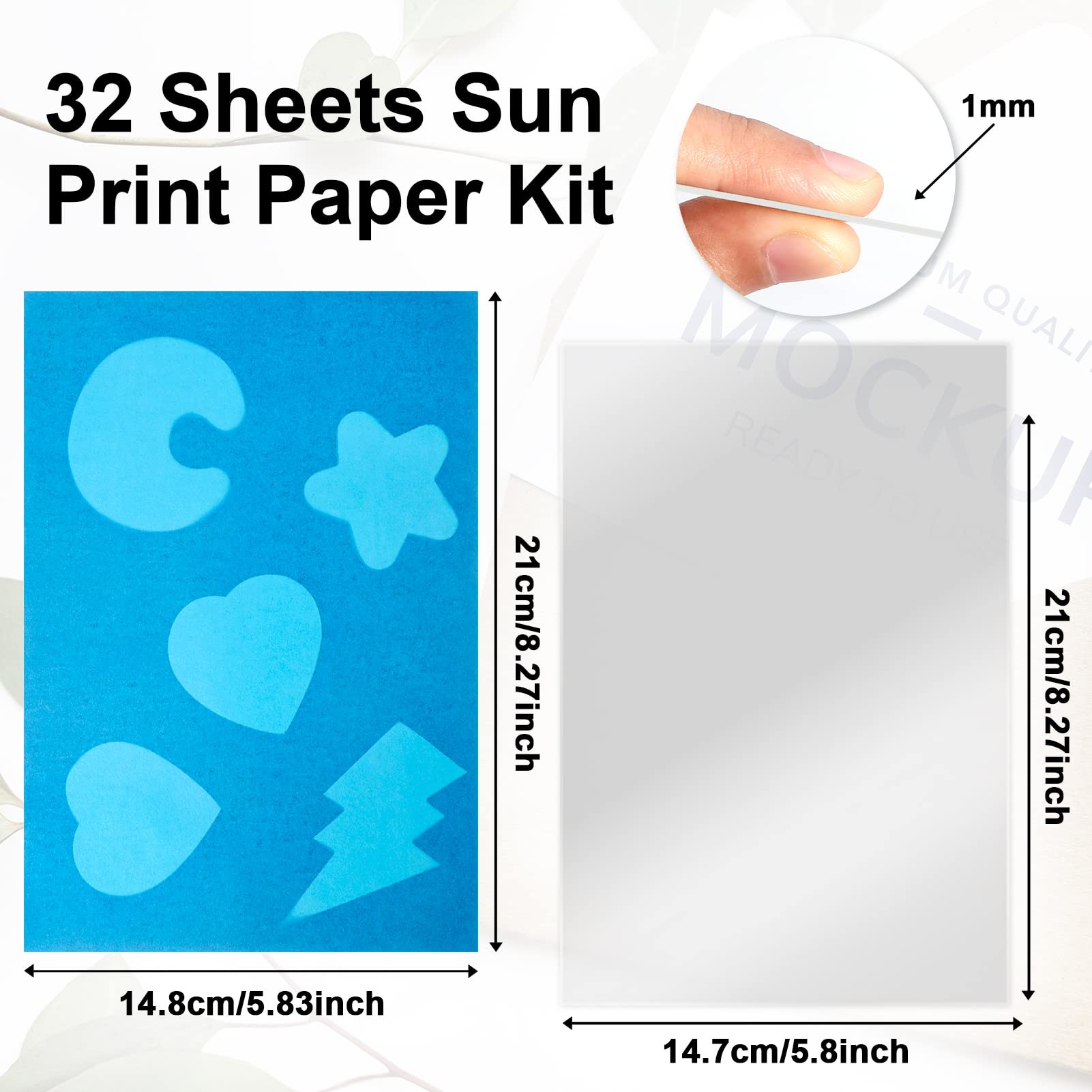 Package Included: 32 sheets of solar printing paper with 1 sheet acrylic plate,which is enough for your daily use and replacement needs@Proper Size:The cyanotype paper is about 14.8 x 21 cm / 5.8 x 8.3 inches,suitable for your daily use,you can carry it around without adding much weight for you@Sun-based Science:Use the power of the sun to create art,put plants,flowers or other things on the paper,then press it with clear glass or acrylic board,put it under the sun,then rinse the paper with water and dry it to get beautiful art@Good Design:Sensitive nature printing paper is made of blueprint paper material,not easy to break or tear,light weight,but please note that it needs to be stored away from light to avoid exposure@Wide Application:Sun art paper is a great craft activity that can be used as a science tool to create together in classrooms,camps,libraries,etc. to develop children's interest and improve their hands-on skills,and the finished product is also beautiful decoration