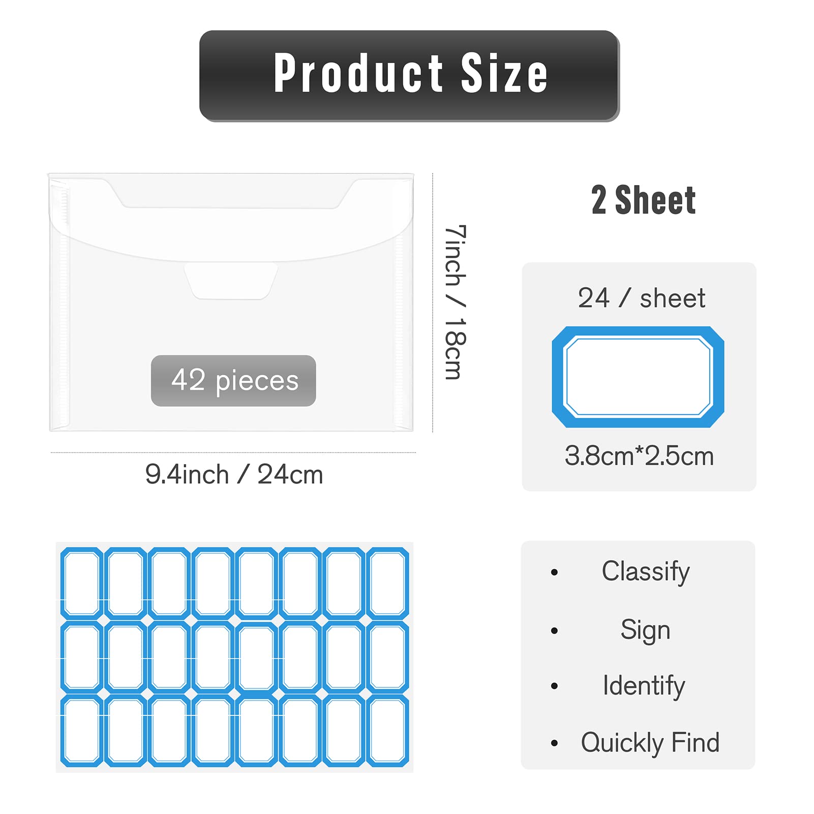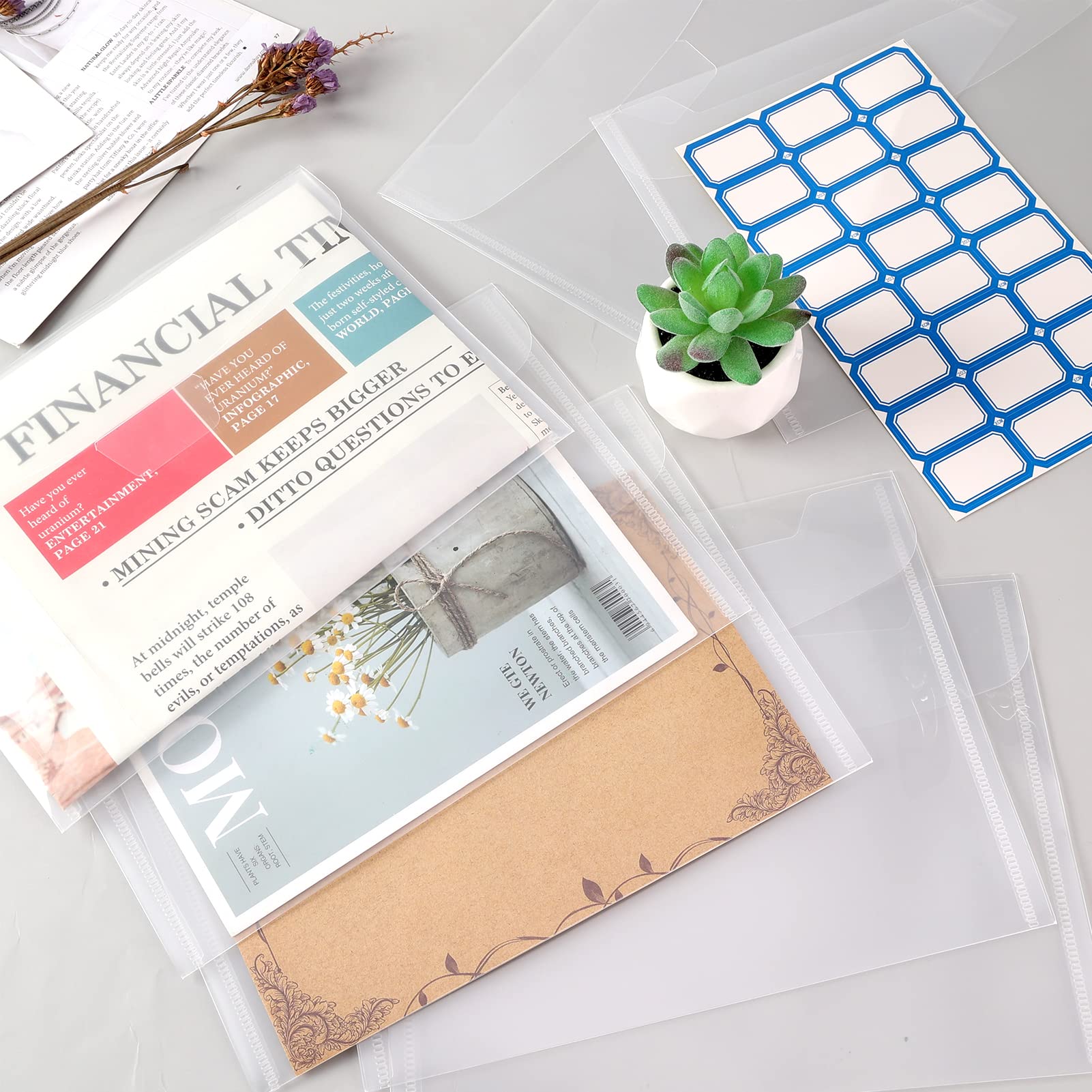 【Large Enough Sizes】The stamp and die storage bag have large enough sizes, approx. 9.4*7Inch / 24*18cm, total 40 pieces in this storage bag@【Seal Easy to Close】This sealing way is simple and easy, it is convenient to close or open the storage bag. It will save your time and help you store stamp or dies better.@【Label Stickers Help Identify】Our craft storage contain 48 label stickers, you can label each stamp and die storage bag, so that you can quickly identify where you need to find.@【Durable Material】Scrapbooking & stamping supplies are made of Plastic, it is not only waterproof, but also durable, not easy to tear. It will protect your stamp and die from damage, so that you can use at ease.@【Widely Use】This die and stamp storage bag can be suitable for a variety of purposes, you can store dies, stamps, cards, photos, or as a gift to your friend.