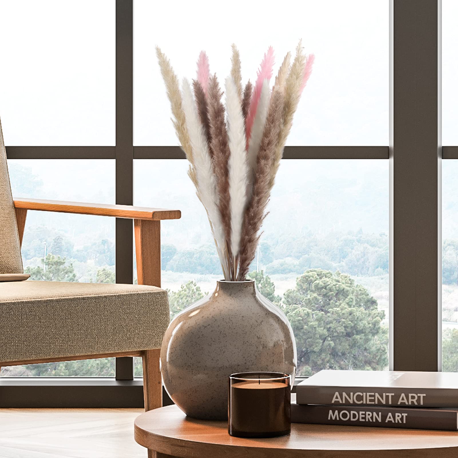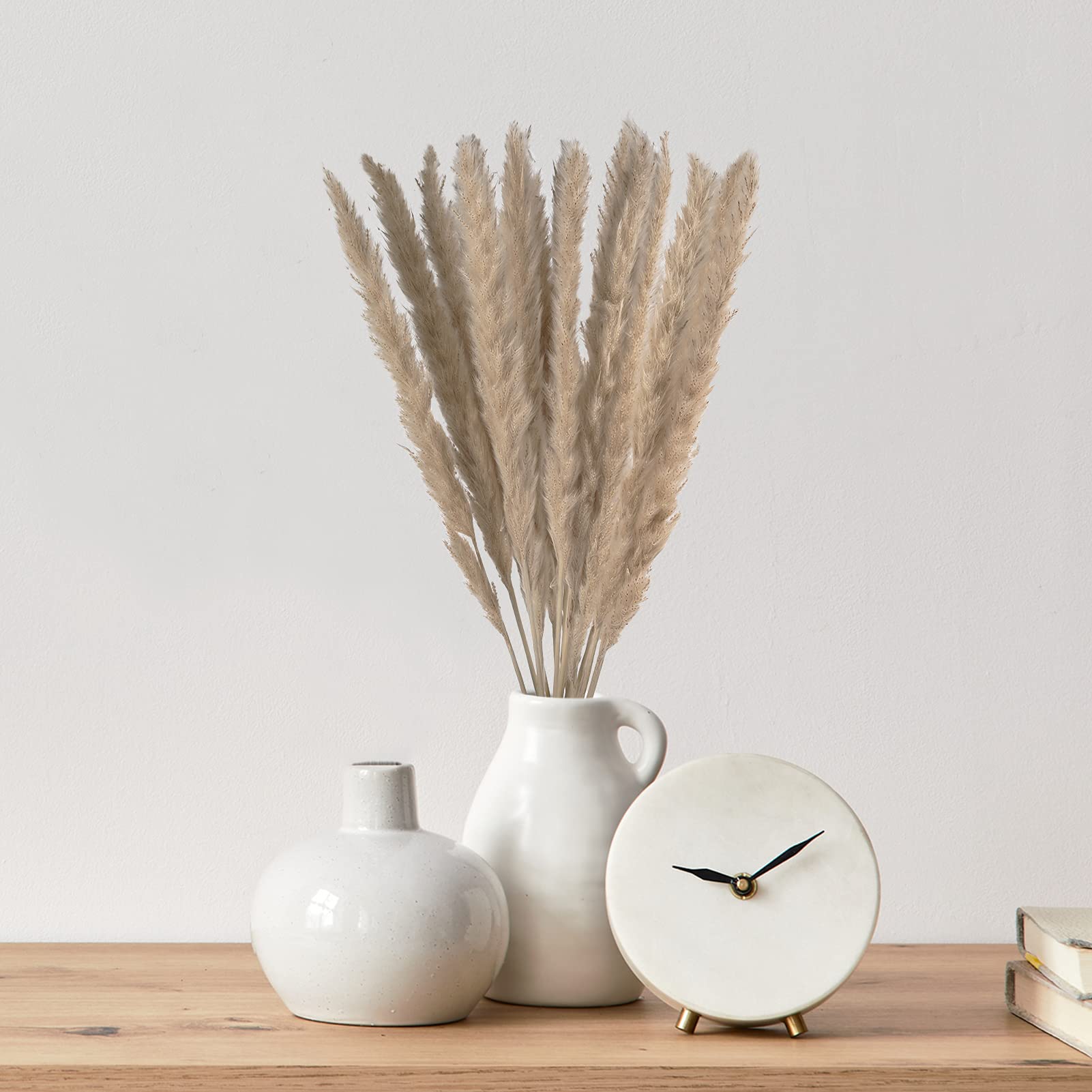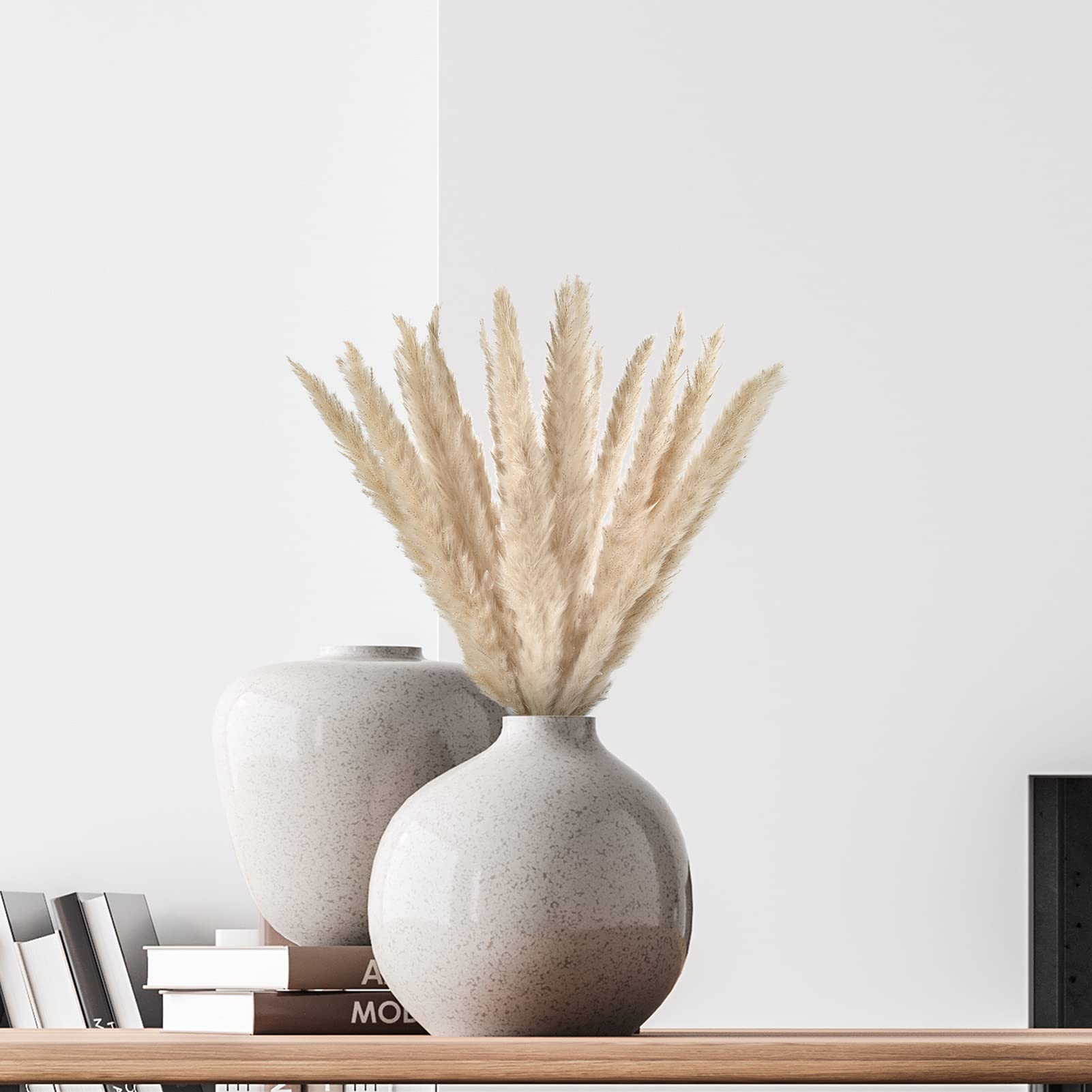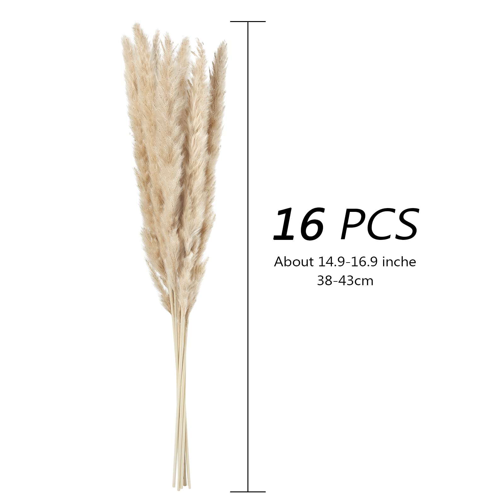Natural Pampas Decoration: The bouquet comes with 16 pieces natural dried pampas grass, each of which measures about 38cm to 43cm totally, can be cut freely to match with your home garden office decor collocation needs@Initial Caring: After receiving our dry pampas grass, you could gently shake it with hands or place at the ventilating place for a maximum of 3-5 hours to recover their natural fluffiness@Good Quality: These truly reed grass are natural, non-toxic and harmless. After drying and dyeing, they can be decorated for a long time without daily care and pruning@Suitable for Any Scenes: These real dried pampas grass with silky and pure soft touch in vibrant look, which are not only nice for wedding, home window, ceremonies and home party decor with stark freshness, but also add more sunshine and love to your loving home, immersing you in pleasure@Plush Fluffy - These soft natural pampas flowers freely in your space with fluffy feathers to create Bohemian style space