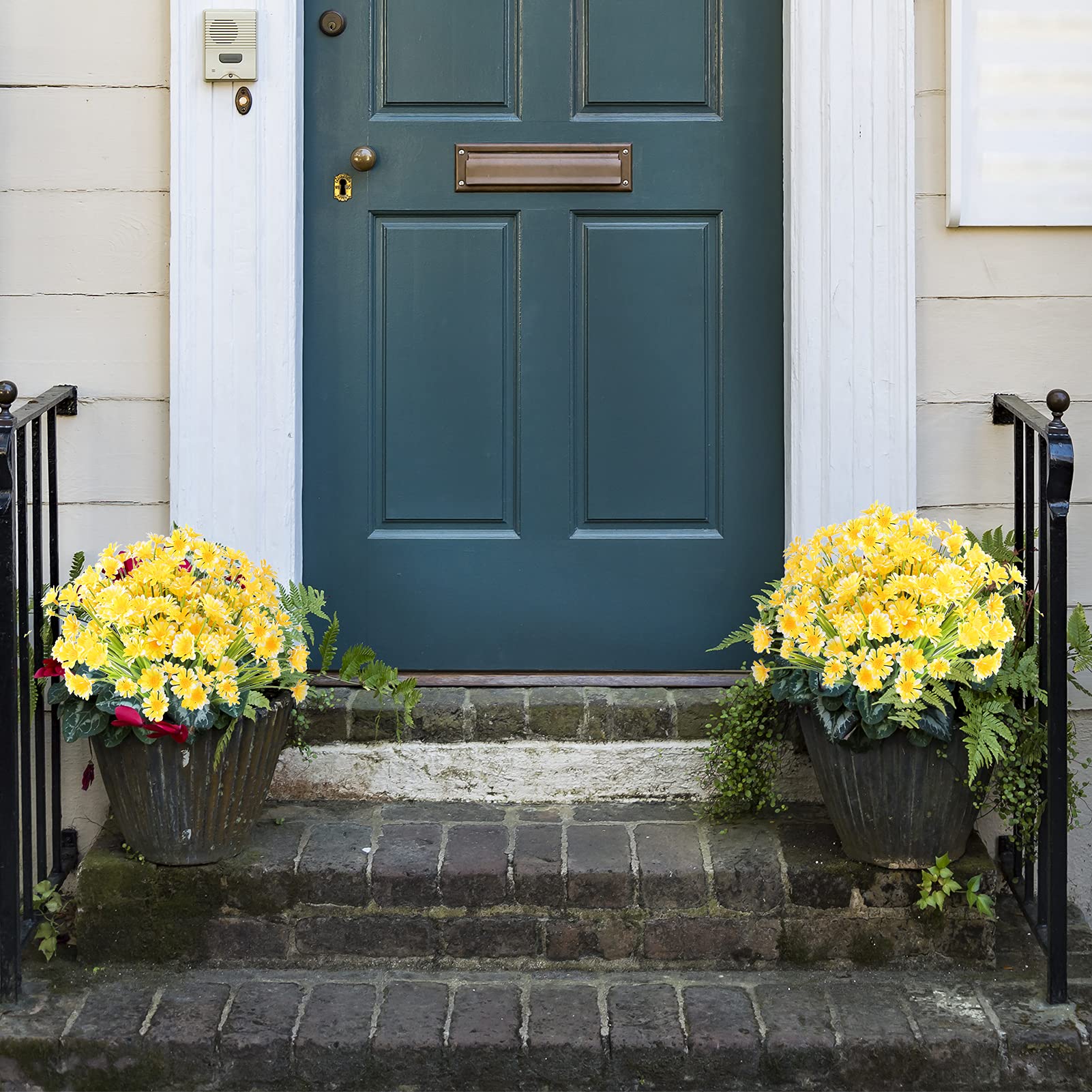 Csyidio 6 Bundles Artificial Daisy Flowers Plastic Flowers Outdoor UV Resistant Plants Shrubs for Garden Porch Hanging Planter Window Box Decor(Yellow)