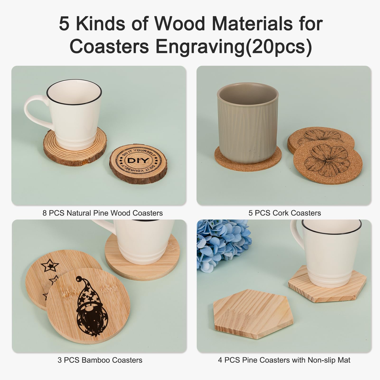 Total 20 PCS Wood Coasters:
